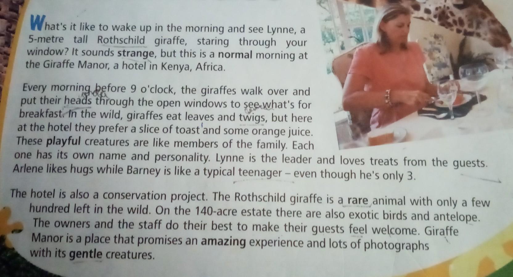 Задание : Imagine you are at Giraffe Manor. Send your English pen friend an email. In your email write: where you are, what the place is like, what is special about it and what you like the most.