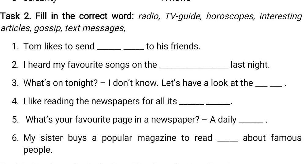 6. My sister buys a popular magazine to read gossip about famous people.