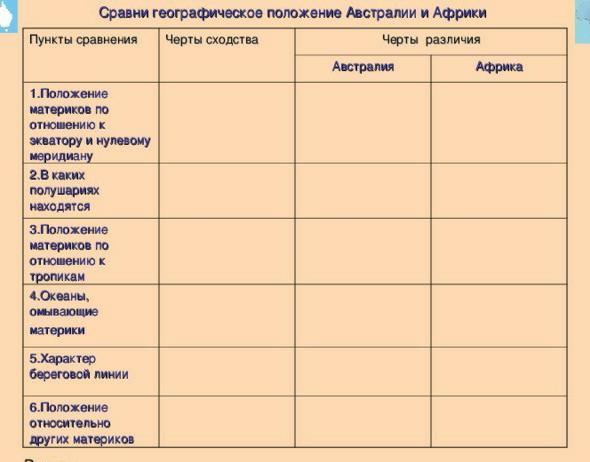 Африка: материк расположен во всех полушариях: северное, южное, западное, восточное