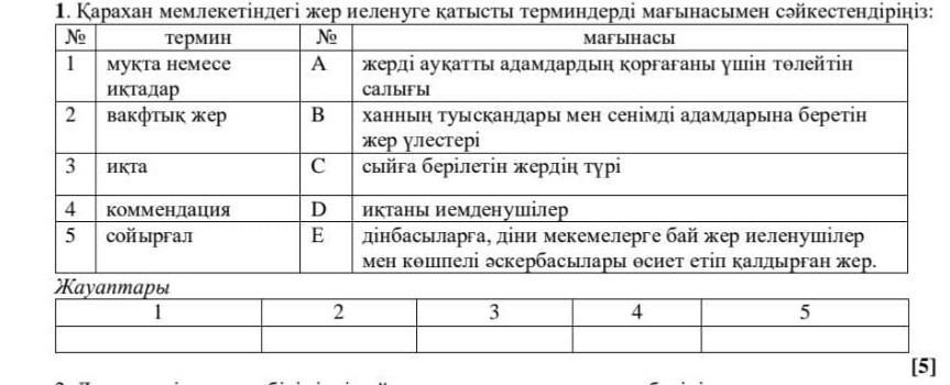 Жауаптары 1)D 2)C 3)A 4)E 5)B