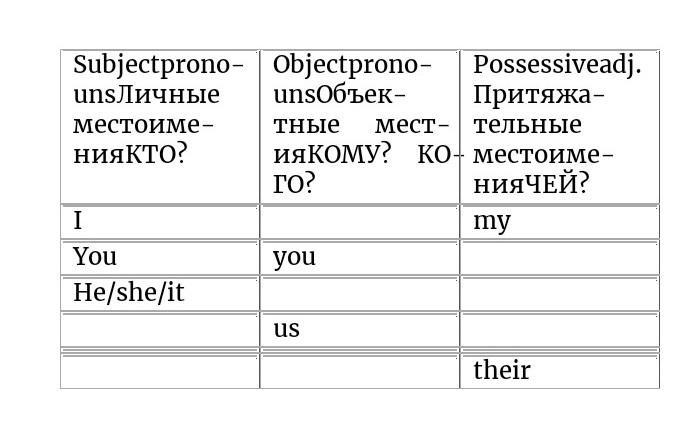 Помогите, пожалуйста: Complete the chart. Заполни пропуски в таблице