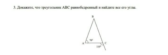 Угол В будет равен 40°, так как 180°(сумма углов треугольника) - 70°-70°=40°