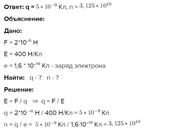 7. Капля масла находится в однородном электрическом поле, на которую действует сила 2 мкН. Напряженность электрического поля равна 400 Н/Кл.