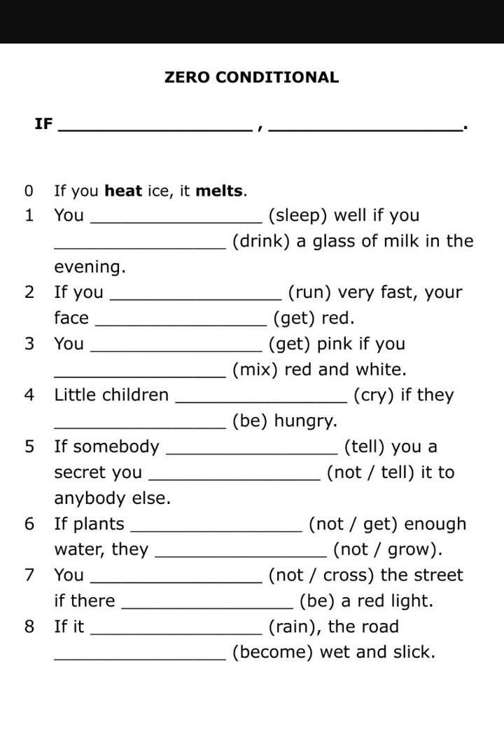 1.sleep, drink. 2.run, gets, 3.get, mix, 4. cry, are. 5.tells ,don't tell. 6. don't get, don't grow. 7. You don't cross, is. 8. Rains, becomes.