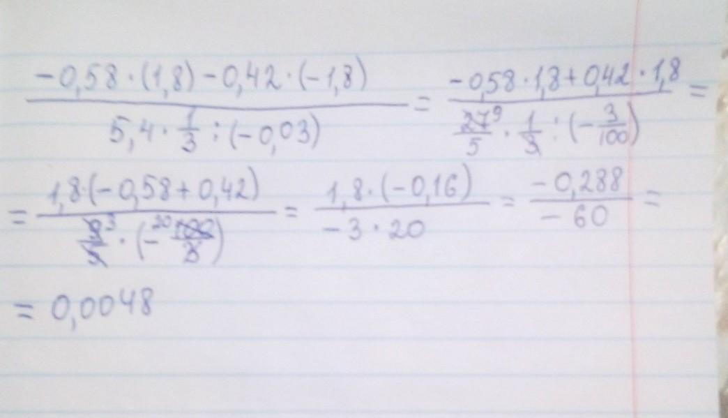 Посмотри внимательно там где -0,58•(-1,8) есть минус.А то у тебя не стоит.Если есть,то ответ будет другой.