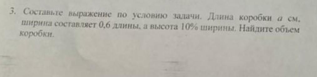 Пусть длина - а см, тогда ширина - 0,6 а , а высота - 0,6а * 0,1