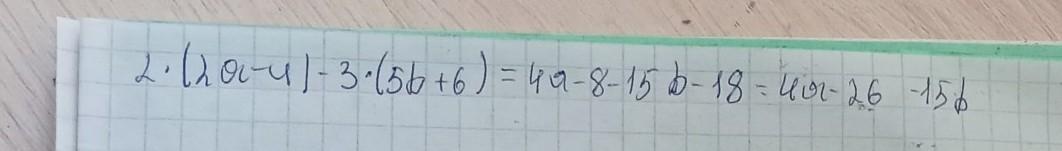 2(2а-4)-3(5b+6)=(4а-8)-(15b+18)=4а-26-15b