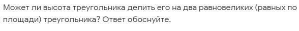Медиана, проведенная из вершины треугольника делит его на два равновеликих треугольника. В равнобедренном треугольнике высота, проведенная к основанию, является так-же и медианой. Поэтому ответ: да, может, если этот треугольник равнобедренный и высота проведена из его вершины.