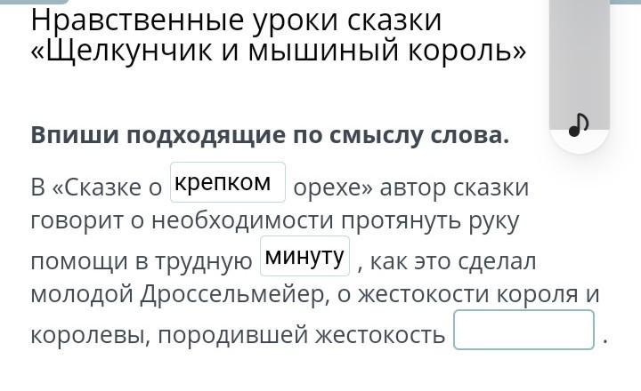 Нравственные уроки сказки «Щелкунчик и мышиный король» Впиши подходящие по смыслу слова.