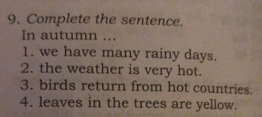 In autumn *we have many rainy days* and *leaves in the trees are yellow*