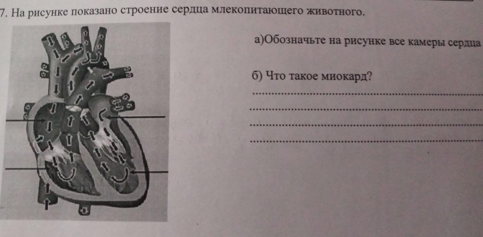 б)Миокард-это сердечная мышца. По артериям, которые называются коронарными, к ней поступает кровь.