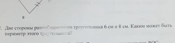 Две стороны равнобедренного треугольника 6 см и 8 см.Каким может быть периметр этого треугольника?