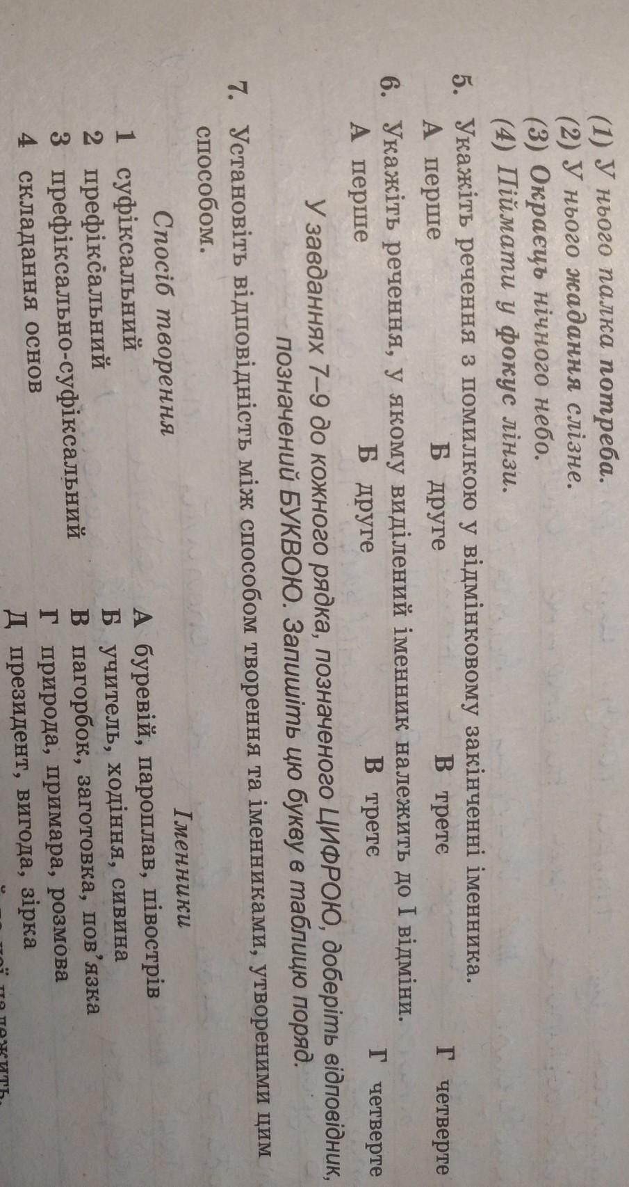6. Речення, у якому виділений іменник належить до І відміни → А – перше (іменник потреба належить до I відміни)