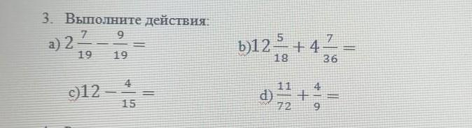 3 . a) 12 7/19 - 9/19 = 1 26/19 - 9/19 = 1 17/19 ;