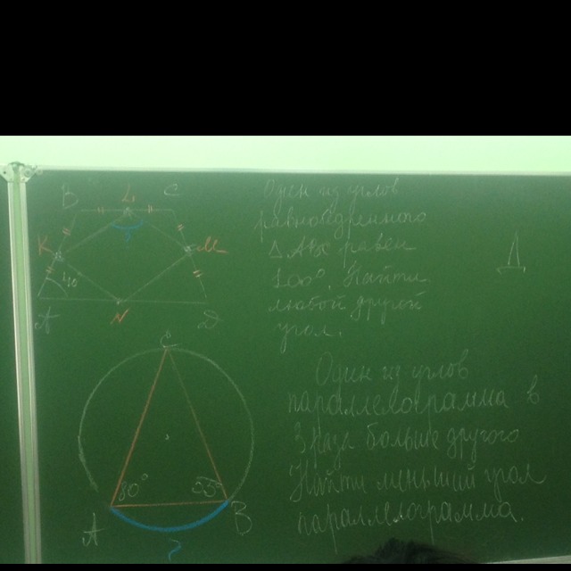 1) один из углов равнобедренного треугольника ABC равен 100градусам,. Найти любой другой угол