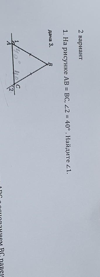 угол 2 равен углу С так как они вертикальные и угол С равен углу А так как это равнобедренный треугольник (АВ=ВС)