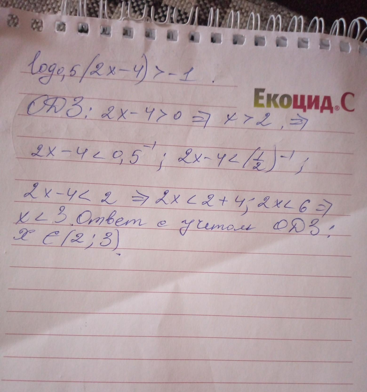 log0,5 (2x-4) > -1, log0,5 (2x-4) >log0,5 2,