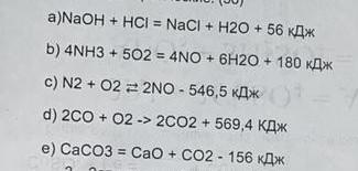определите какие из предложенных реакций экзотермические, а какие эндотермические: