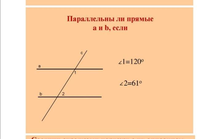 угол 1 и угол 2- односторонние, и их сумма = 120+61=181°, а у параллельных прямых при секущей сумма односторонних углов раана 180°