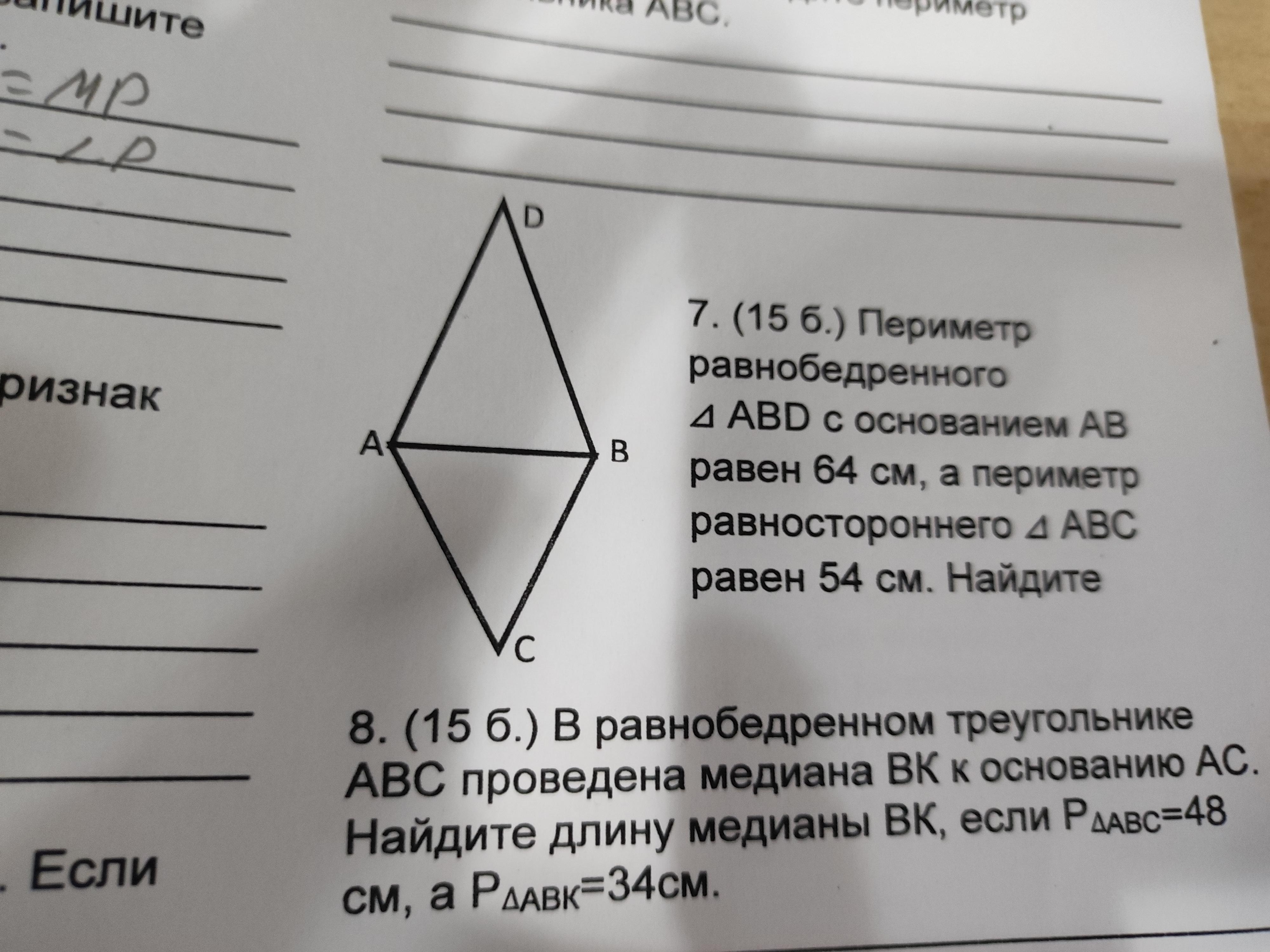 2)Рассматриваем треугольник ABC, он равнобедренный, значит AB = AC = 18, BC = 64 - 36(18 + 18) = 28