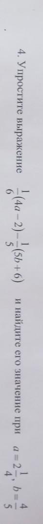 4. Упростите выражение 1/6 * (4a - 2) - 1/5 * (5b + 6) и найдите его значение при a = 2 1/4, b = 4/5
