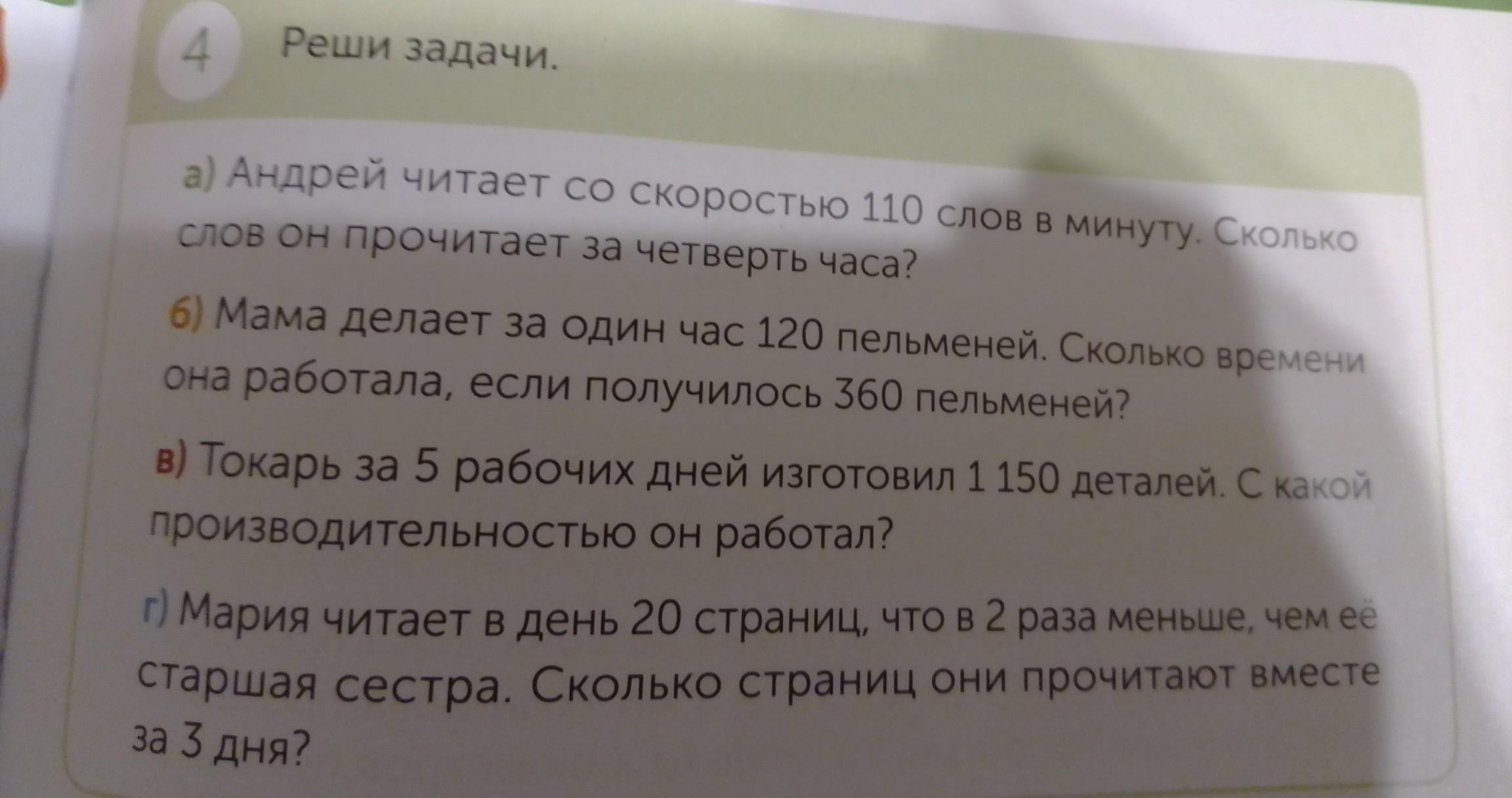 г) 1) Сначала узнаем, сколько страниц в день читает старшая сестра: