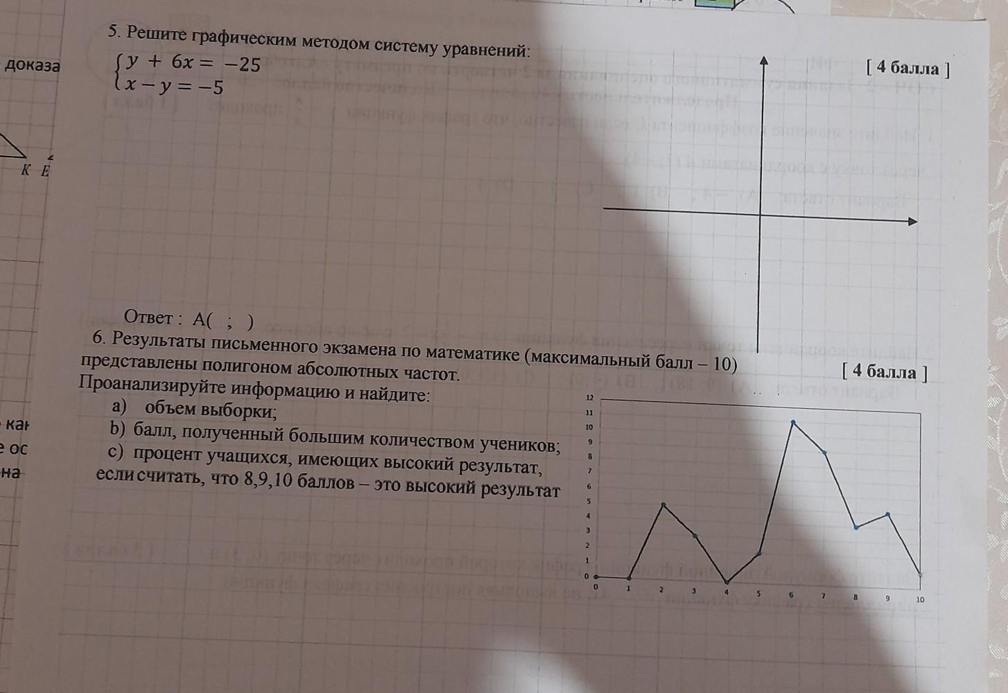 5. Решите графическим методом систему уравнений: (у + 6x = -25 (х - у = -5