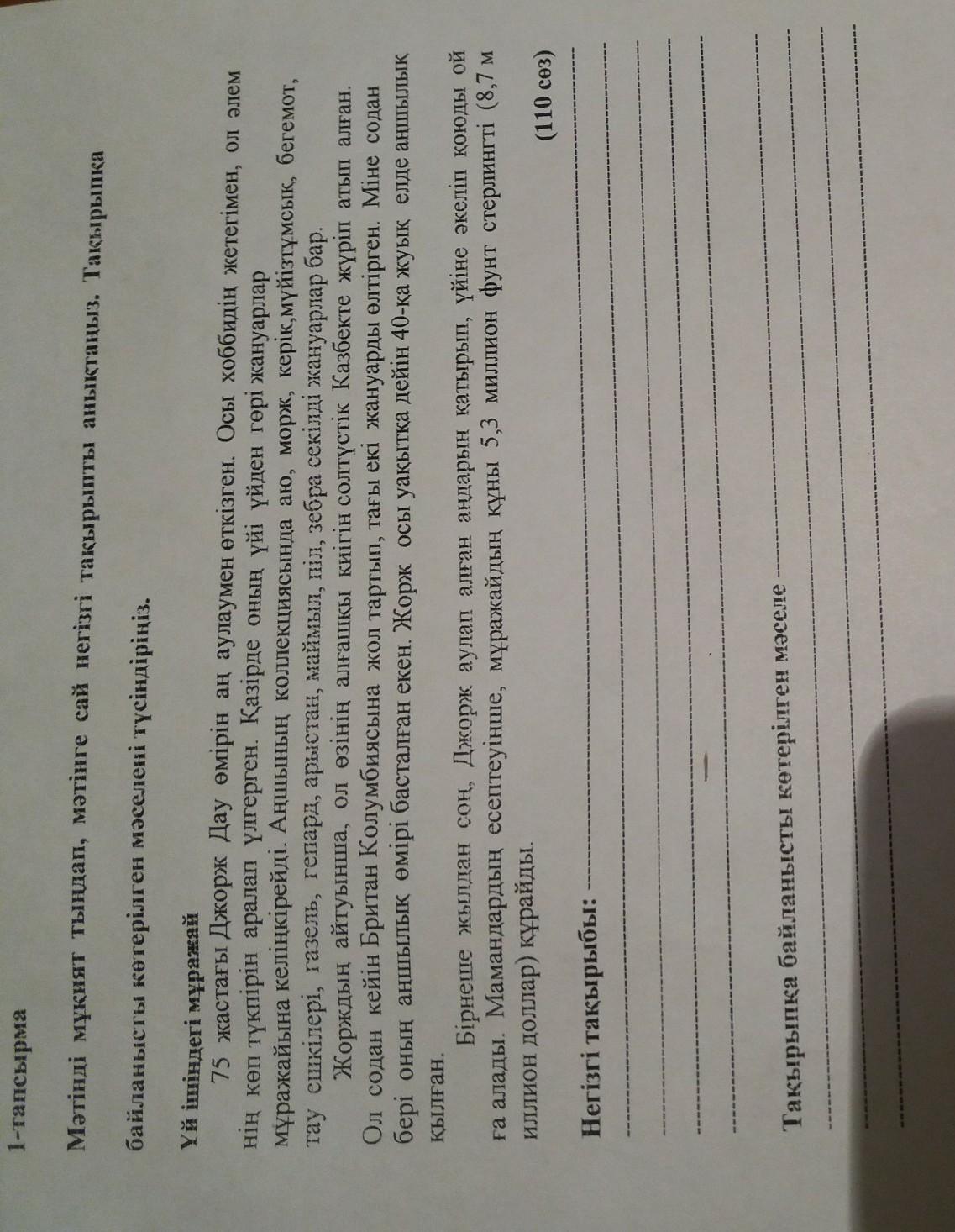 Тақырыпка байланысты көтерілген мәселе ан аулаушы болған, оның колекциясында аю, морж, керік тағыда баска коп жануарлар бар(менің ойымша осылай дұрыс)