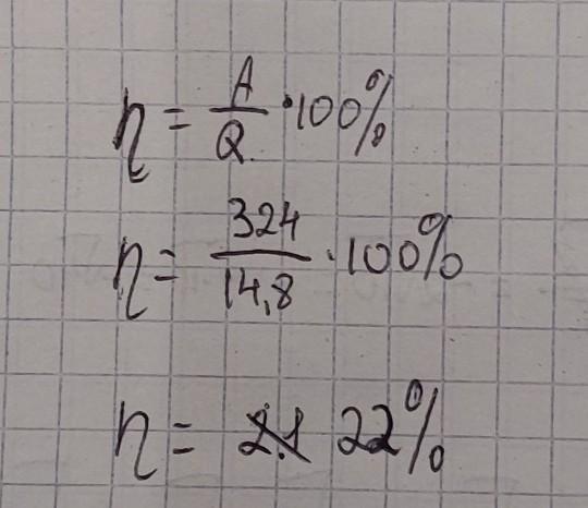 Определите КПД двигателя автомобиля, которому для выполнения работы 324 МДж потребовалось 14,8 кг бензина.