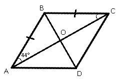 т.к. ∠BAC= ∠BCA, то Δ ABC - равнобедренный ⇒ что ABCD - ромб ⇒ ∠BCО=∠DСО=44°, ∠СОD=90° (диагонали ромба пересекаются под прямым углом AC ⊥ BD). зная,что сумма градусных мер Δ =180°,найдем ∠CDO: