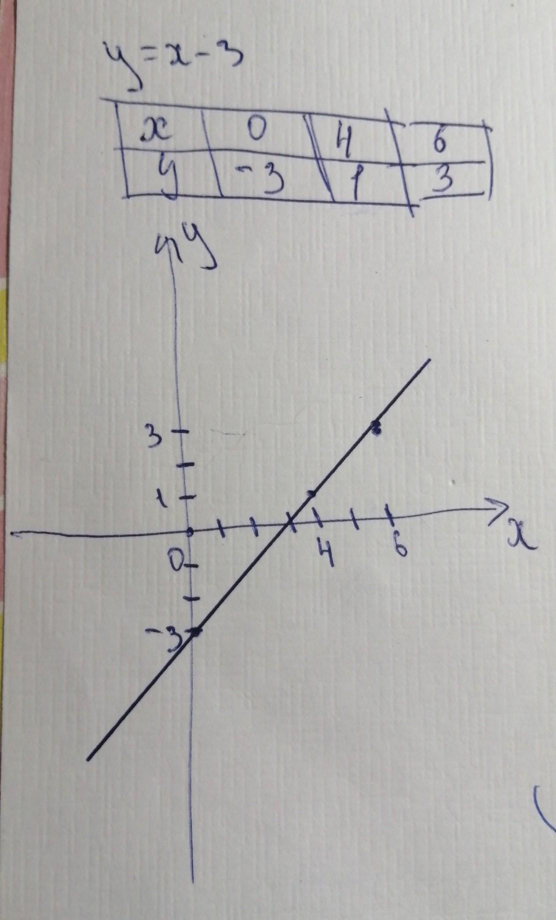 423. Постройте график функции, заданной формулой у = х - 3. Найди те по графику значения функции при х= 4 их x=6 по быстрей пожалуйста с таблицей дам 25 балов