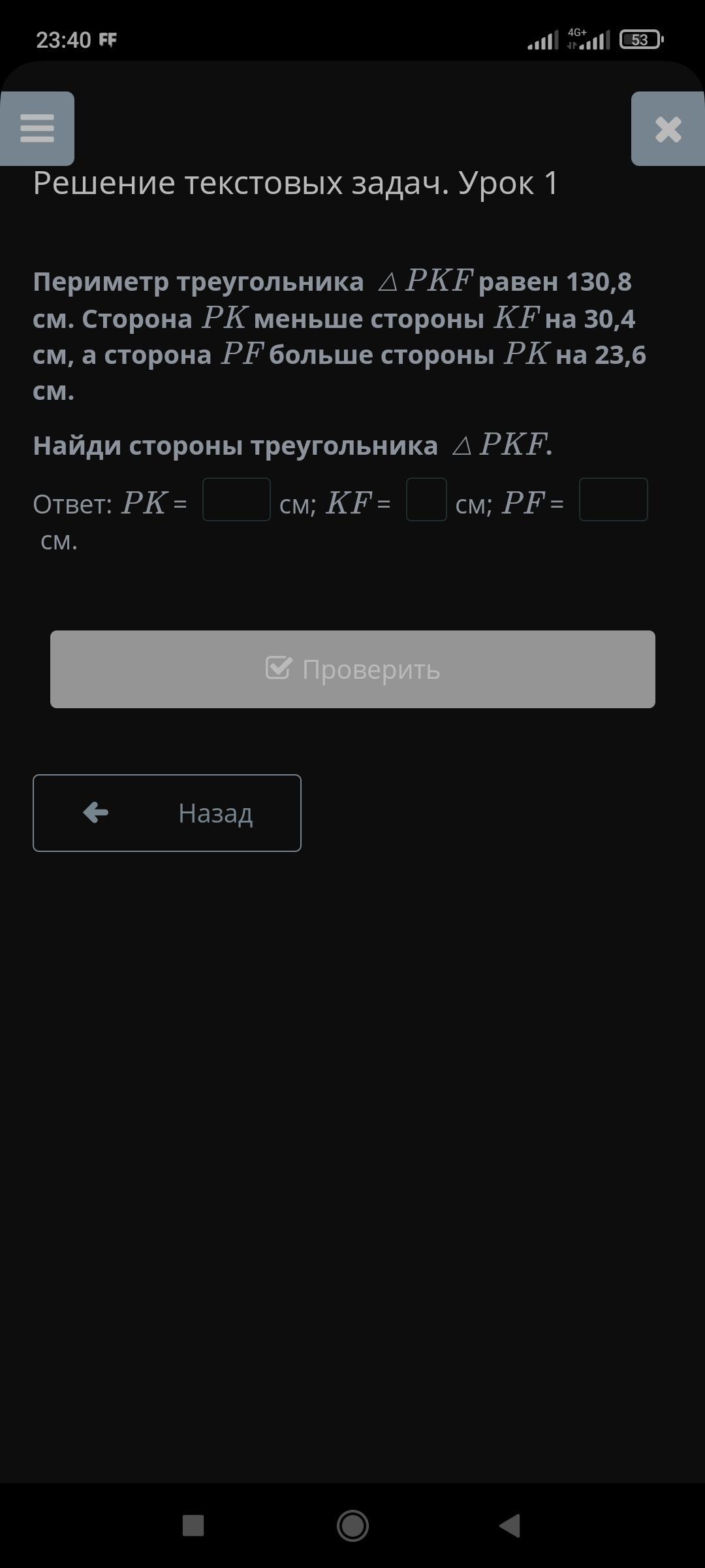 Найди стороны треугольника ∆РКF