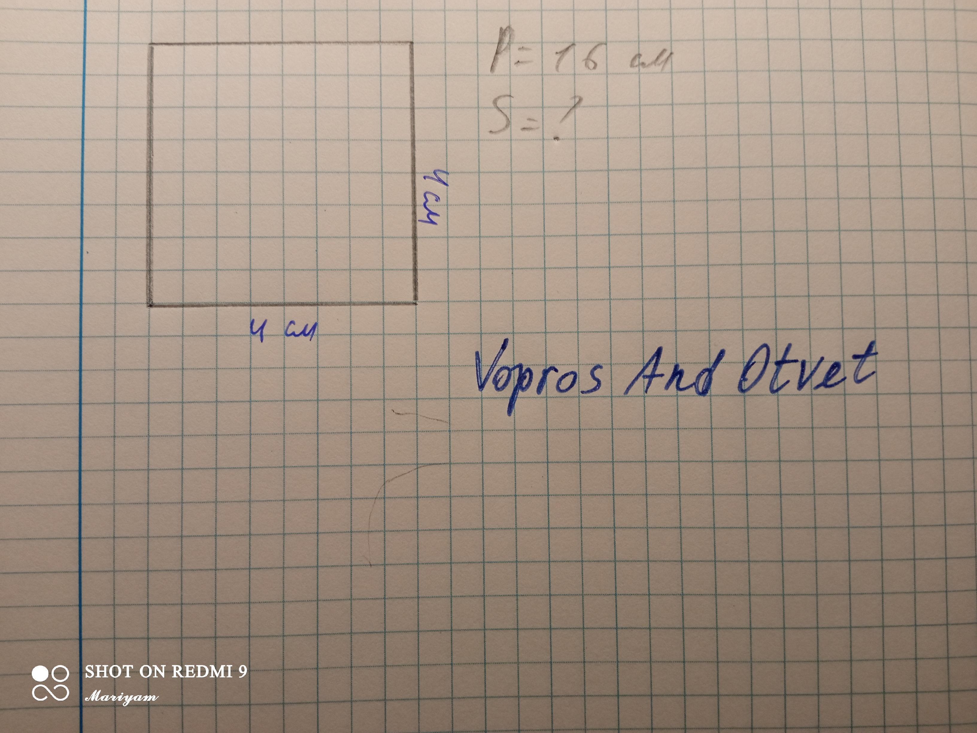 Как начертить квадрат с периметром 16 см вложение найти его площадь