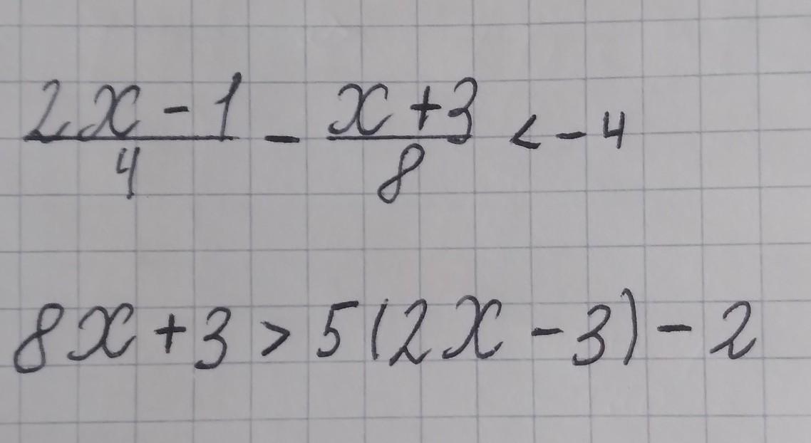 1). 2 (2х-1)-(х+3)< -32 2). 8x+3>10x-15-2