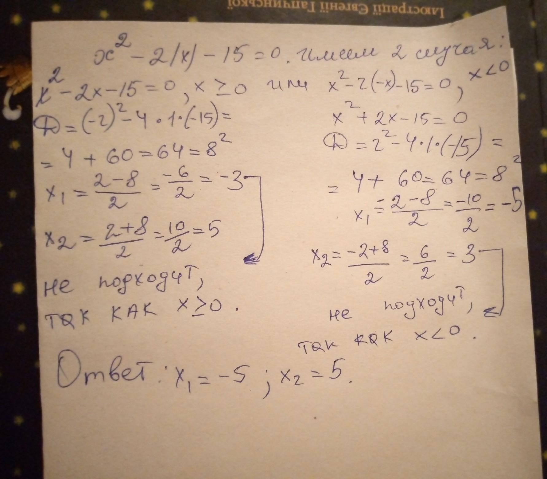 7. Решите уравнение: x2 – 2 x1 - 15 = 0