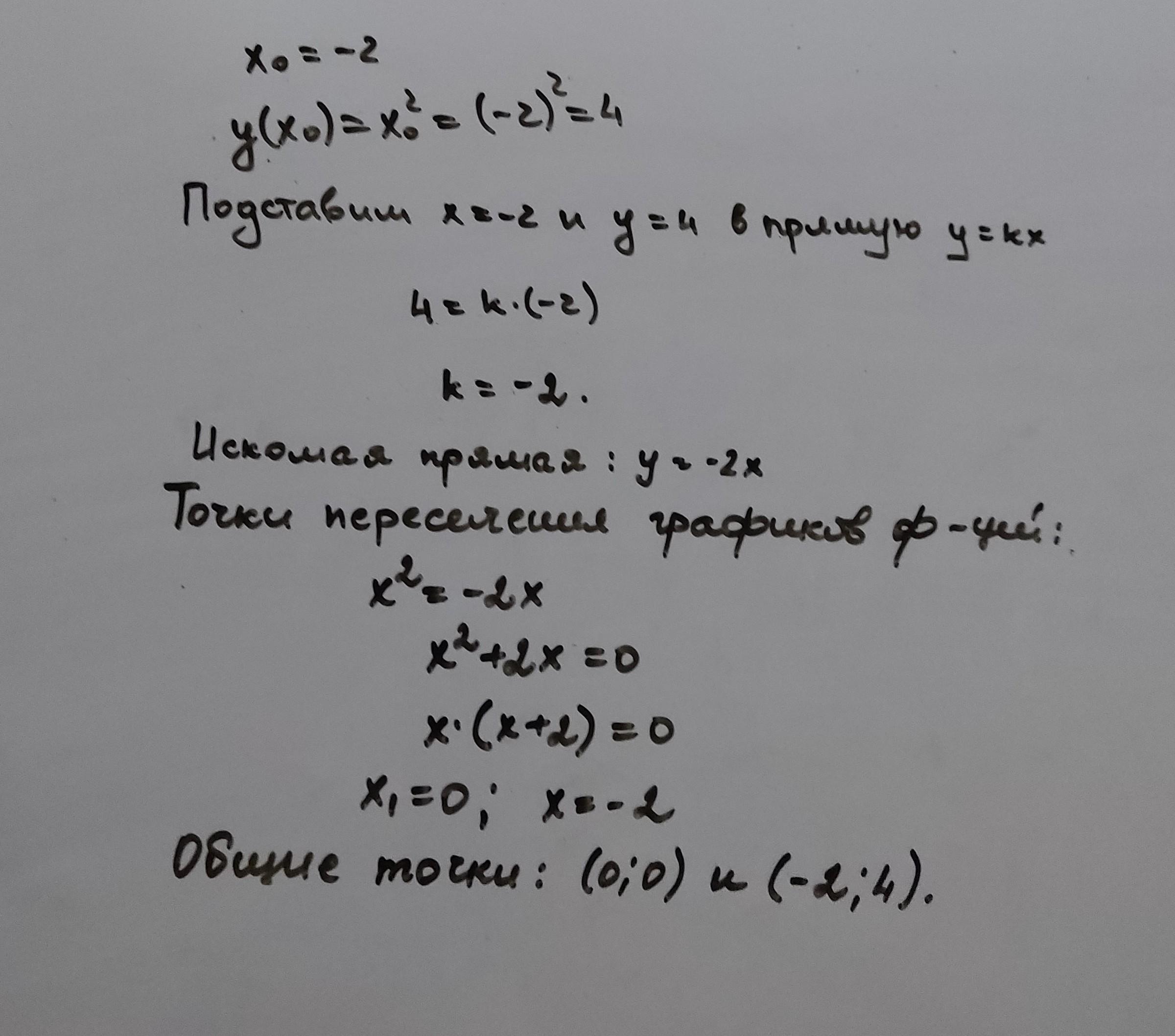 При каком значении k прямая y=kx имеет с графиком функции y=x² общую точку с абциссой -2?Есть ли у этих двух графиков ещё общие точки,если да,то какие?