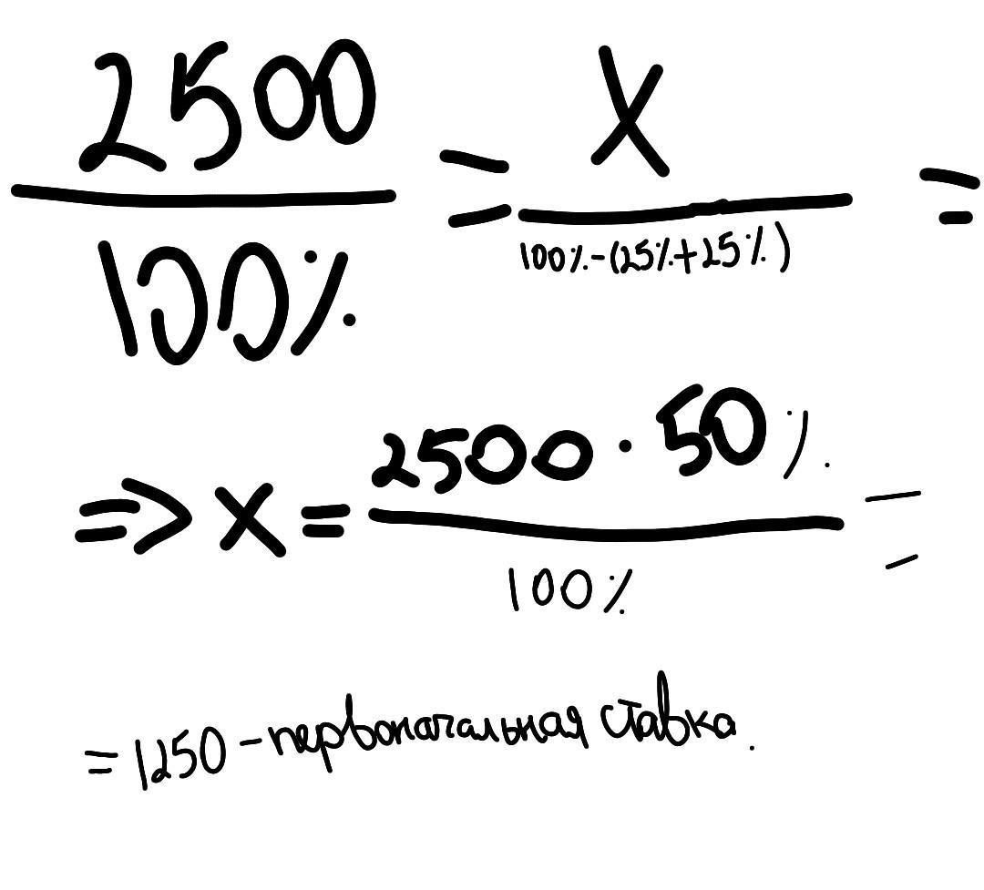 Считая то, что процент за год 25, то за 2 года процент получился вдвойне. За отношениям ищем х (первоначальный вклад клиента). Получаем 12500.