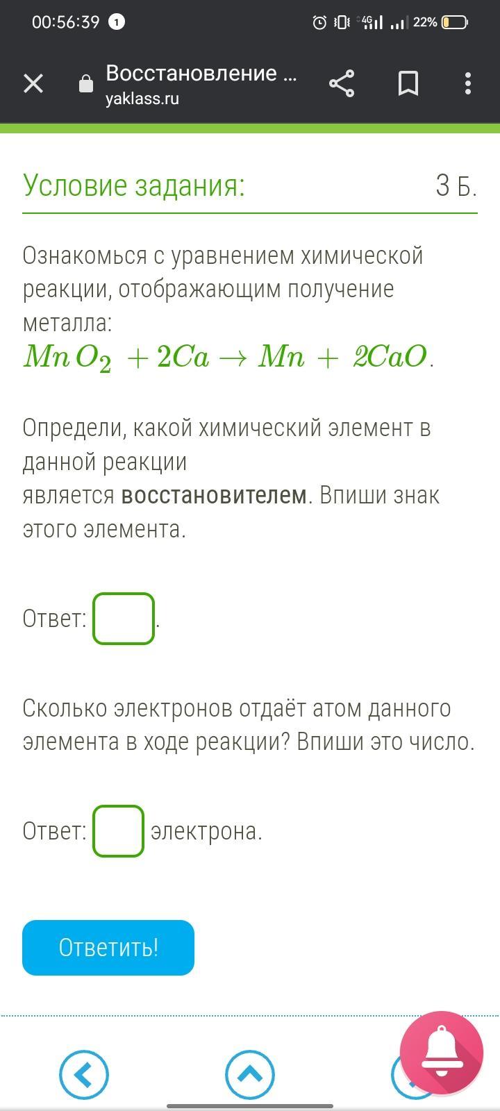 Сколько электронов отдаёт атом данного элемента в ходе реакции? Впиши это число.