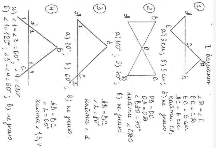 - 3,4- равнобедренные треугольники( углы при основании равны)