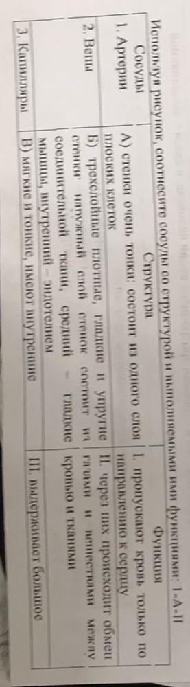 Используйте рисунок,Соотнесите сосуды со структурой и выполняемыми ими функции даю 35 баллов