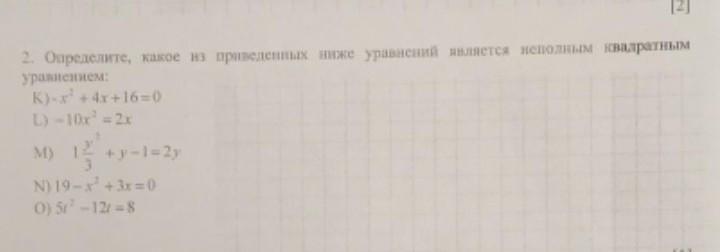 Из приведенных ниже уравнений неполным квадратным уравнением будет