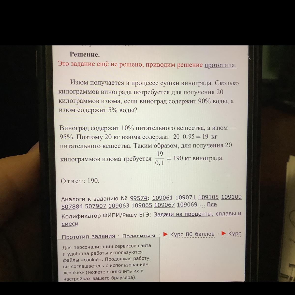 Сколько килограммов винограда потребуется для получения 82 килограммов изюма, если виноград содержит 90% воды, а изюм содержит 5% воды?