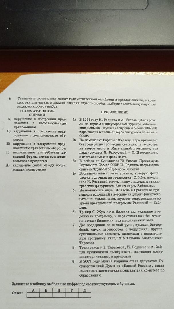 Помогите пожалуйста, даю 40 баллов!! Установите соответствие между грамматическими ошибками и предложениями. В 1996 году И. Роднина и А. Уланов..