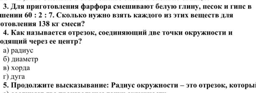 60+2+7=69 частей, 138:69=2 кг на одну часть, 60*2=120 кг глины, 2*2=4 кг песка, 7*2=14 кг гипса
