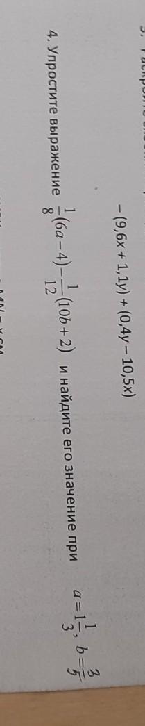 1/8(6a - 4) - 1/12(10b + 2) = 3/4а - 1/2 - 5/6b - 1/6 = 3/4а - 5/6b - 2/3