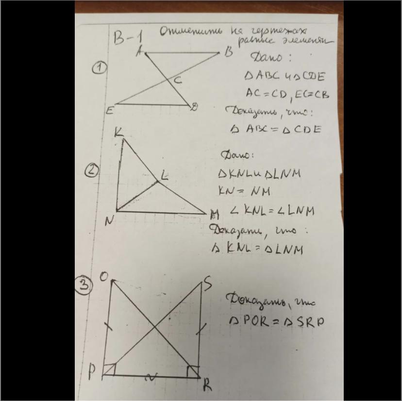 следовательно, что треугольник АБС=треугольник СДЕ по 1пр. ( двум сторонам и углу между ними)