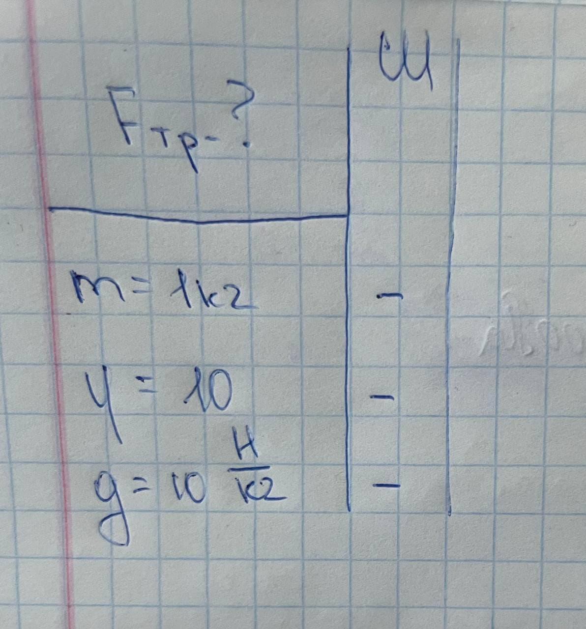 Найти силу трения, действующую на тело массой 1 кг. при коэффициенте трения в 10 Н/кг.|помогите пожалуйста очень надо