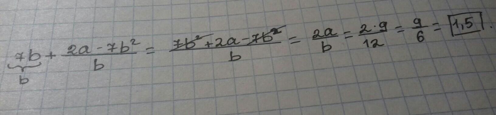 Срочно !!!Упростите выражение 7b+(Начинается дробь) 2a-7b^2/b и найдите его значение при а=9; b=12