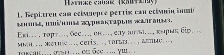Екінші,төртінші,бесінші,оныншы,елу алтыншы,қырық бірінші,мыңыншы,жетпісінші,сегізінші,тоғызыншы,
