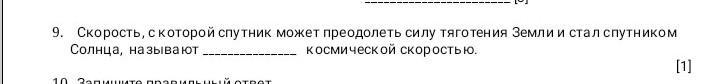 9.Скорость,с которой спутник может преодолеть силу тяготения Земли и стал спутником Солнца, называют_________ космической скоростью.